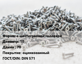 Шуруп с шестигранной головкой 10х70 оцинкованный ГОСТ: DIN 571