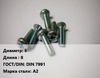Винт 5х8 DIN 7991 Сталь: А2
