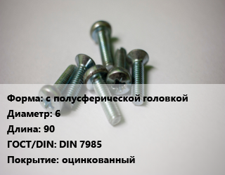 Винт с полусферической головкой 6х90 DIN 7985 оцинкованный, цена за 1000 шт,цена за шт, кг цена от 2 984 Тг / кг, где купить, условия доставки в Нур-Султане и Акмолинской области