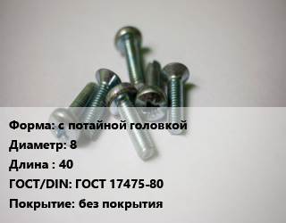 Винт с потайной головкой 8х40 ГОСТ 17475-80 без покрытия