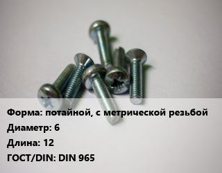 Винт потайной, с метрической резьбой 6х12 DIN 965