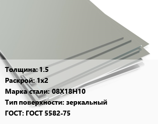 Лист нержавеющий 1.5 1х2 Сталь: 08Х18Н10 Тип:зеркальный ГОСТ 5582-75